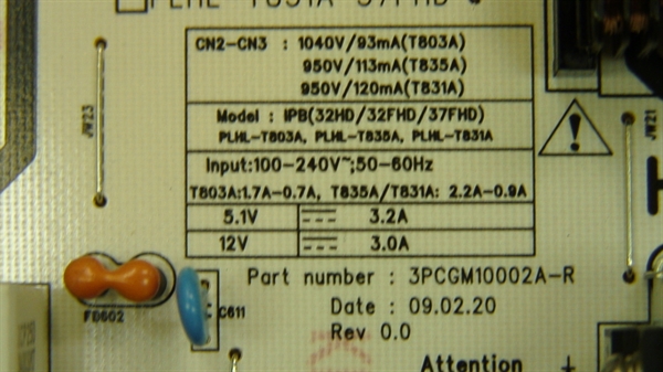 Manufacturer part number: 0500-0412-0760, 3PCGM10002A-R, PLHL-T803A 32HD, 39I13295P24421A