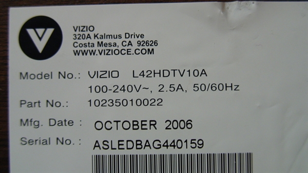 - Vizio 42" LCD TV Power Supply Board
