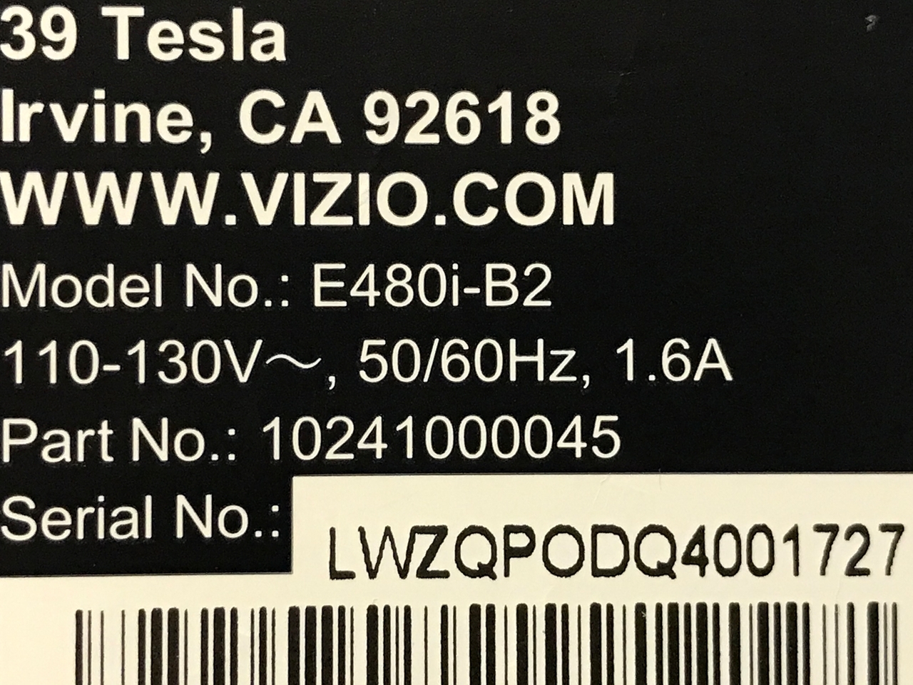 VIZIO # E480I-B2, E550I-B2, E550I-B2E