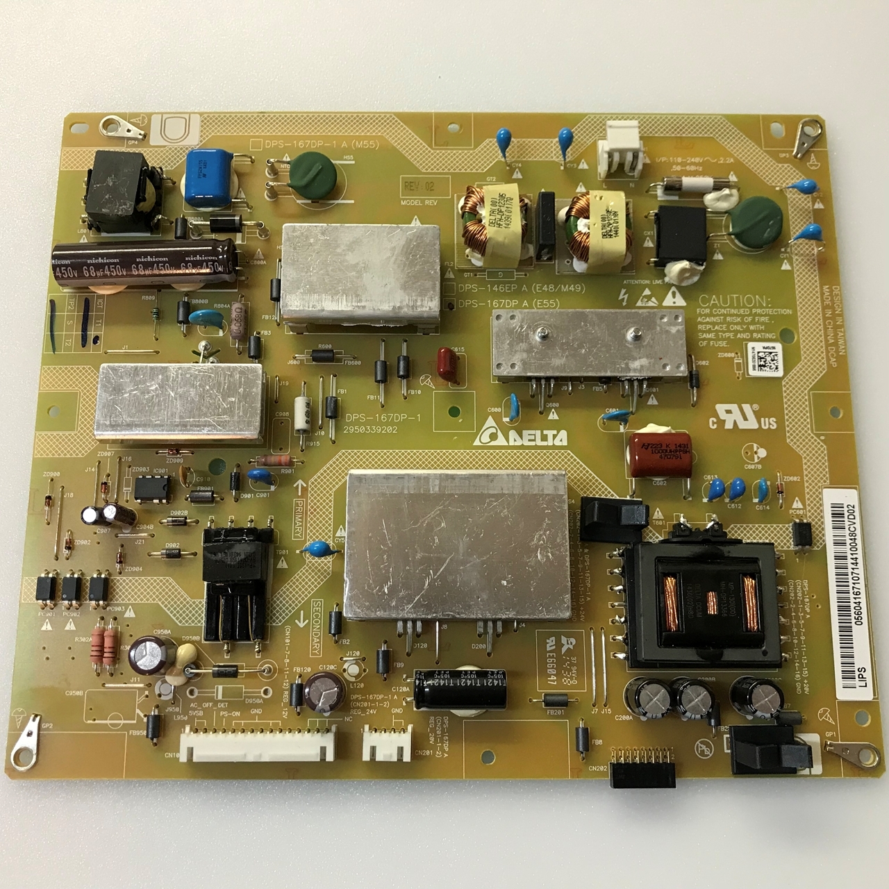 Vizio 55" LED TV Power Supply Board: 056.04167.1061, 056.04167.1071, DPS-167DP-1, 056.04167.0001, 056.04167.1051, 056.04167.1071, 056.04167.1011, 2950339202, E550I-B2, E550IB2, E550I-B2E