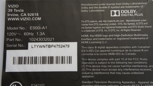 THIS PART WAS PULLED FROM VIZIO 50" LED TV, MODEL # E500I-A1, UNIT WORKING COMPATIBLE ALL MODEL # BELOW.