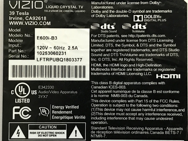 - Vizio 60" LED TV Power Supply Board
