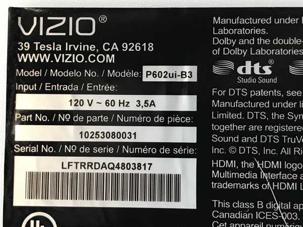 Vizio 60" LED TV Power Supply Board: 09-60CAP060-00, 1P-1145800-1011, 09-60CAP090-00, P602UI-B3, P602UIB3