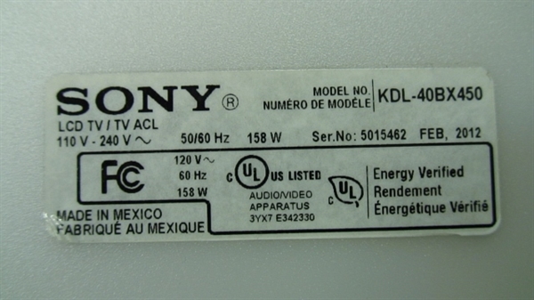 1-474-380-11, 1-885-866-11, 1-733-303-11, APS318(CH), APS-318, KDL-40BX450, KDL-40BX451