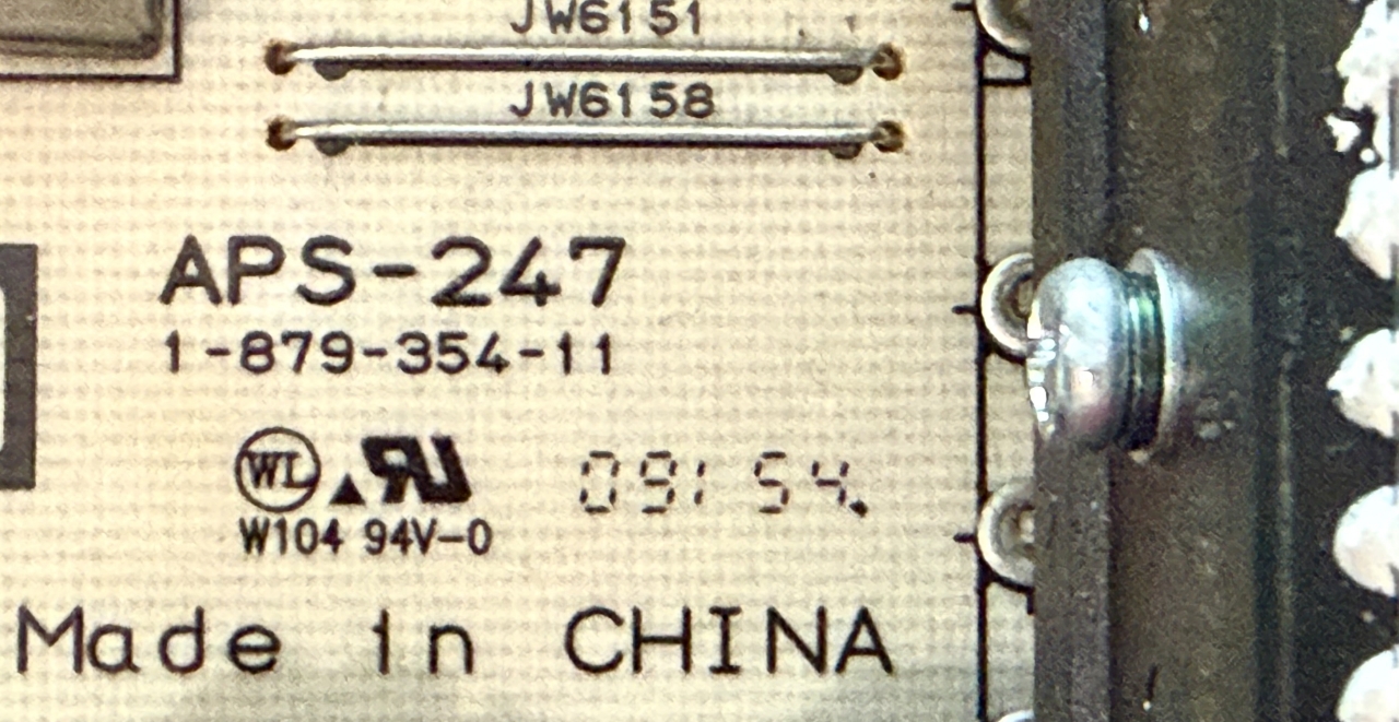 Manufacturer part number: 1-487-341-11, 148734111, APS-247, 1-879-354-11, 148734111, 0905Z015981, KDL-52W5100, KDL-46W5100, KDL-46W5150, KDL-46XBR9, KDL-46Z5100, KDL-52VL150, KDL-52W5150, KDL-52XBR9, KDL-52Z5100