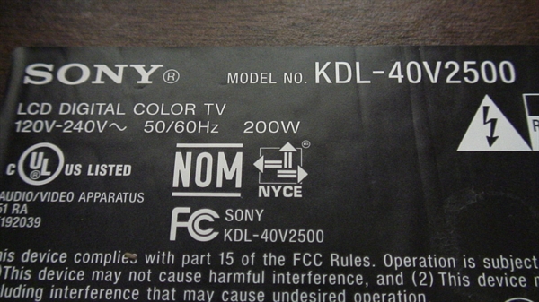 THIS PART WAS PULLED FROM LCD SONY 40" LCD TV MODEL# KDL-40V2500.