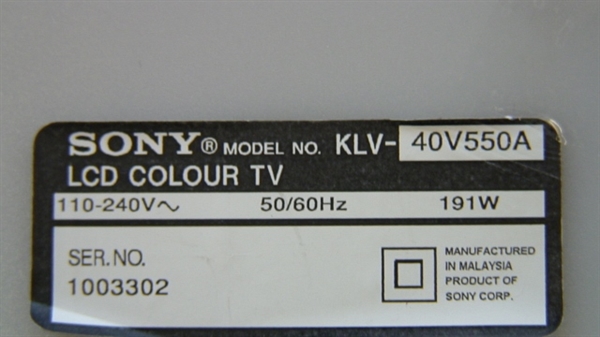 - Sony 40" LED TV Tcon Board Model # KLV-40V550A