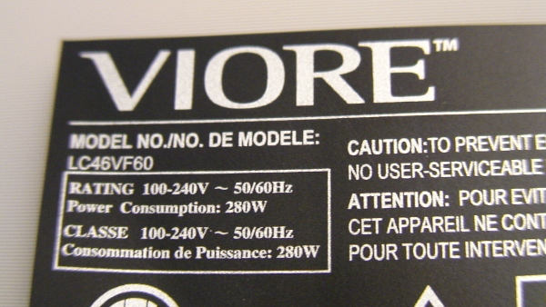 THIS PART PULLED FROM WORKING 46" VIORE LCD TV MODEL # LC46VF60.