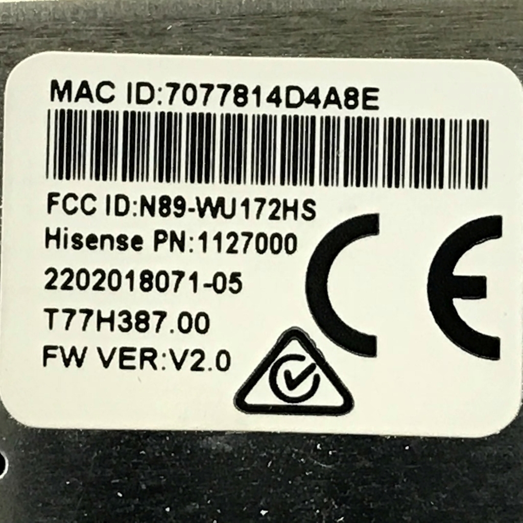 1127000, T77H387.00, 50H5G, 50K22DGWUS, 50H5G, 50H5GB, 40H5, 48H4, 48H5, HISENSE 50 LED TV WIRELESS LAN MODULE, HISENSE WIFI MODULE