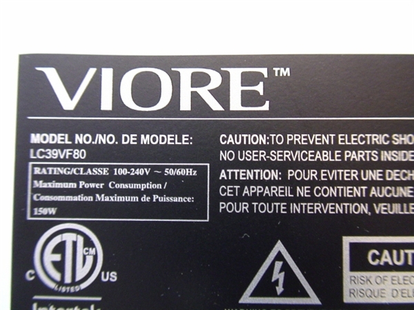 THIS PART WAS PULLED FROM VIORE LCD TV , MODEL # LC39VF80.