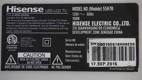 1143755, NU361-HS, N89-NU361, 55H7B, 55H9B2, 50H7C, 50H8C, 50H7GB, 50H7GB1, LC-55N7000U, LC-55N6000U, LC-50N7000U, LC-43N6100U, LC-43N7000U, HISENSE LED TV WIRELESS