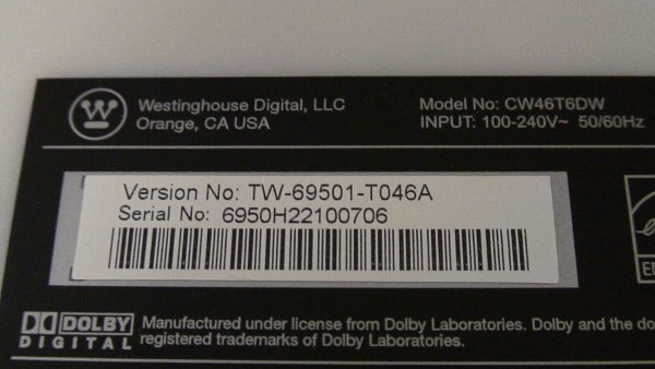 THIS PART WAS PULLED FROM WESTINGHOUSE 46" TV, MODEL # CW46T6DW, VERSION No; TW-69501-T046A.