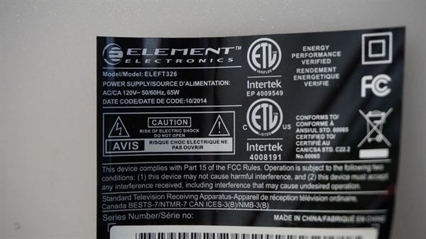 THIS PART WAS PULLED FROM ELEMENT 32" TV, MODEL # ELEFT326.