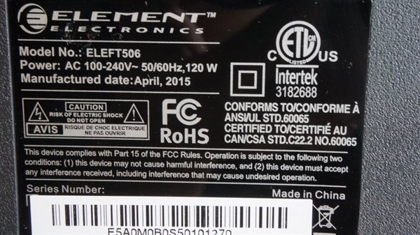 THIS PART WAS PULLED FROM 50" ELEMENT LED TV, MODEL # ELEFT506.