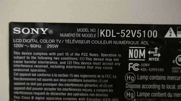THIS PART WAS PULLED FROM SONY 52" MODEL# KDL-52V5100, UNIT WORKING COMPATIBLE ALL MODEL # BELOW.