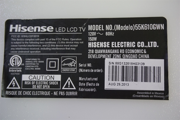 THIS PART WAS PULLED FROM HISENSE 55" LED TV, MODEL # 55K610GWN, UNIT WORKING COMPATIBLE ALL MODEL # BELOW.