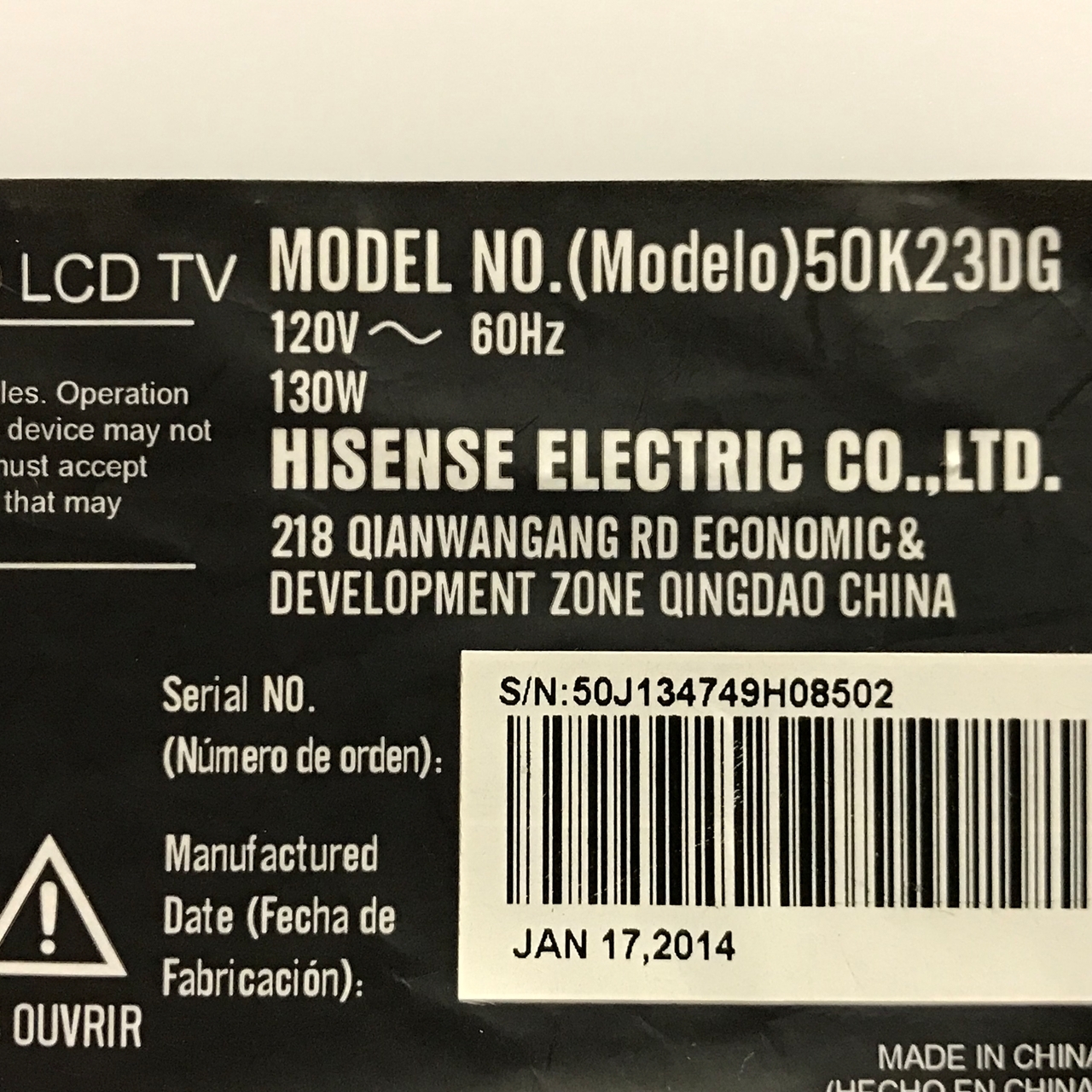 THIS PART WAS PULLED FROM HISENSE 50" LED TV, MODEL # 50K20DG, UNIT WORKING COMPATIBLE ALL MODEL # BELOW.
