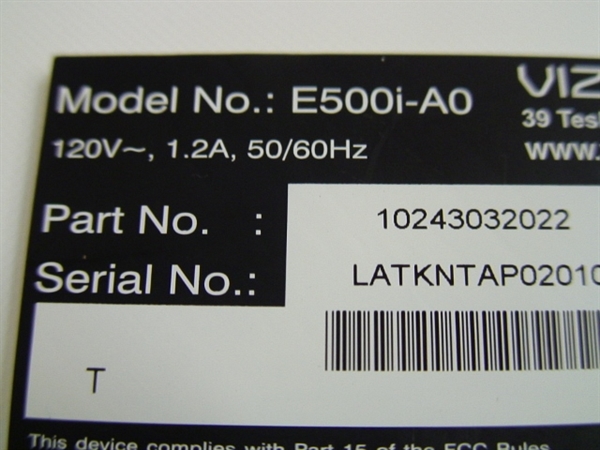 VIZIO 50" LED TV, MODEL # E500I-A0, UNIT WORKING COMPATIBLE ALL MODEL # BELOW.