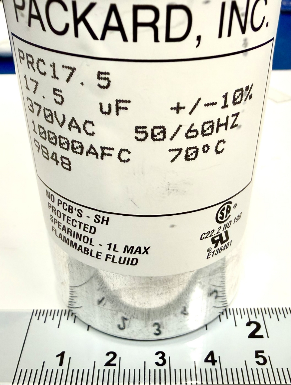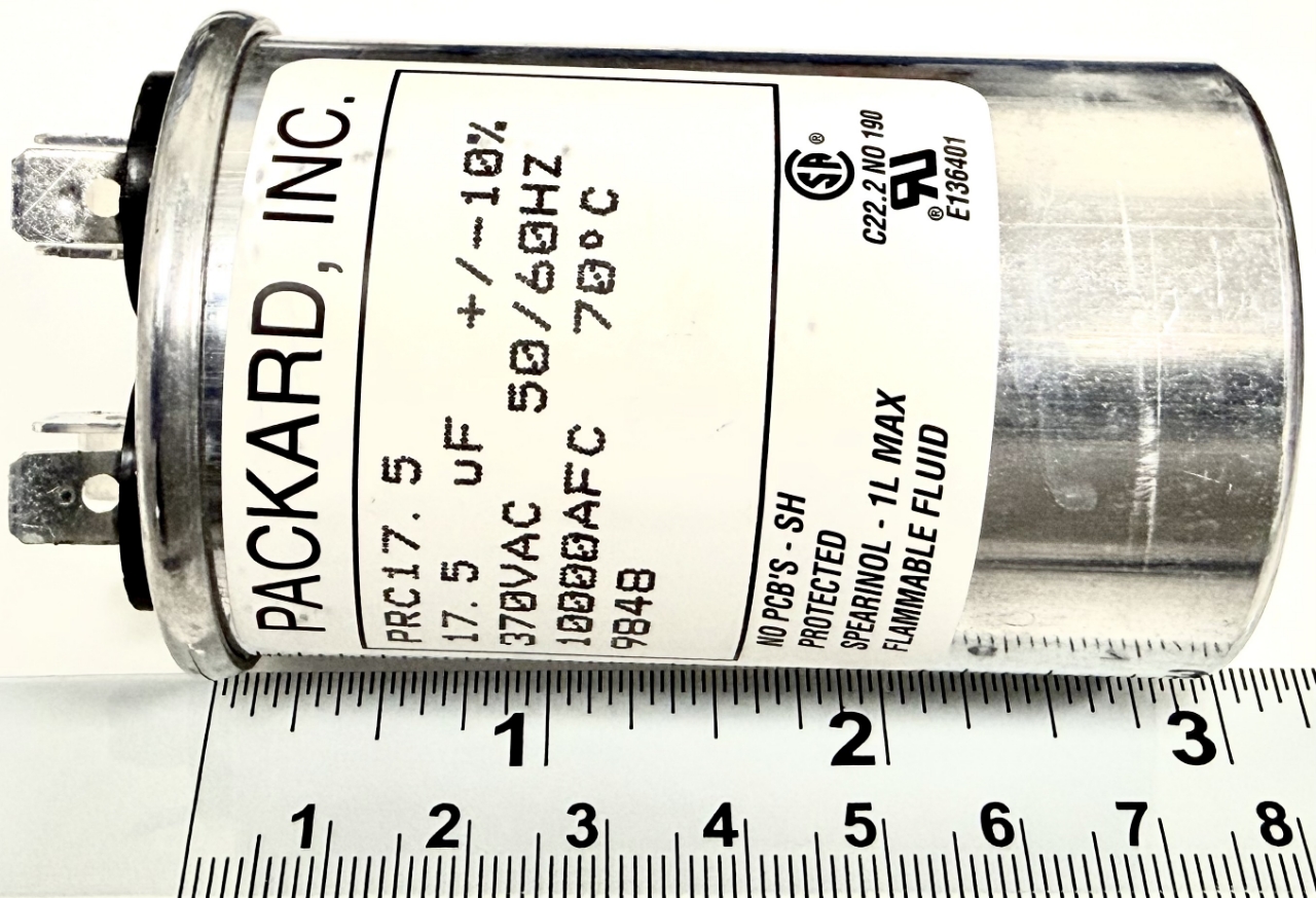 Manufacturer part number: 17.5MFD 370VAC, 17.5uF 370V, 17.5mF 370V, G32-159, PRC17.5, 72x48mm, Run Capacitors