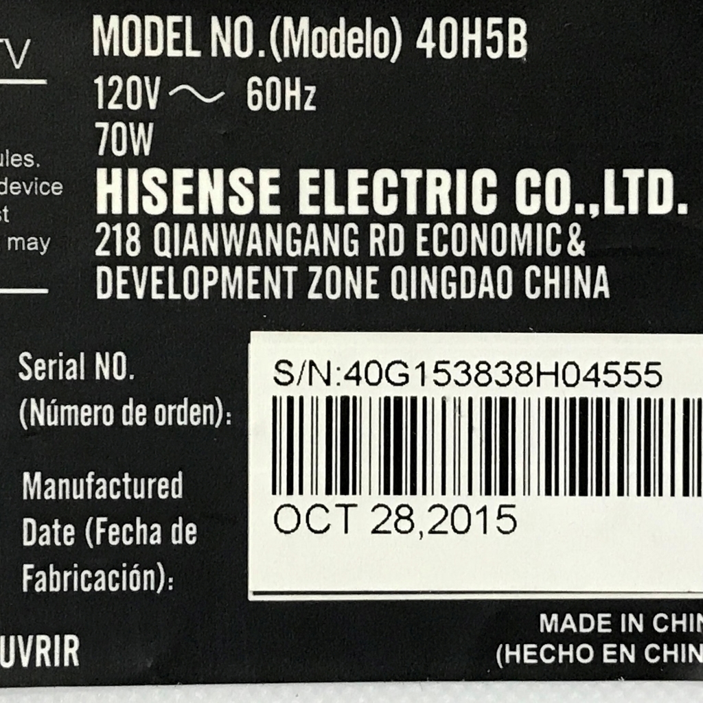 THIS PART WAS PULLED FROM HISENSE 40" LED, MODEL # 40H5B.