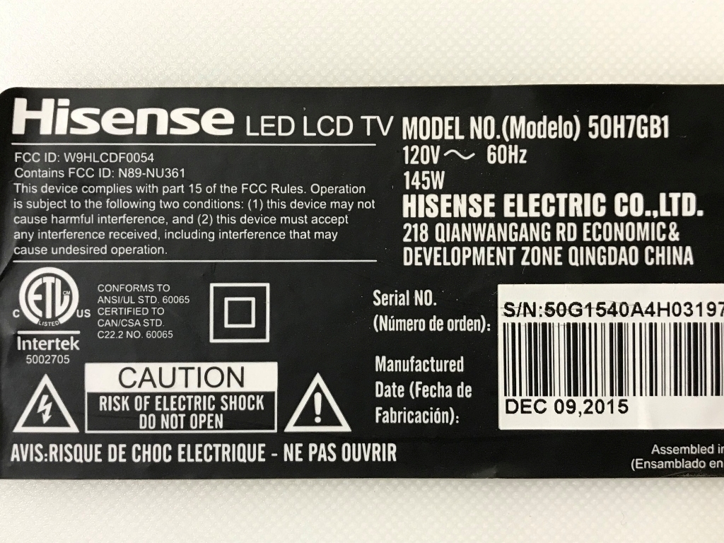 MANUFACTURE: HISENSE