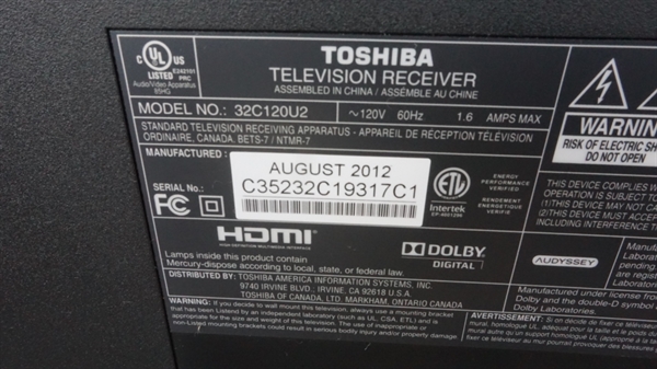THIS PART PULLED FROM WORKING 32" TOSHIBA LCD TV MODEL # 32C120U2, UNIT WORKING COMPATIBLE ALL MODEL # BELOW.
