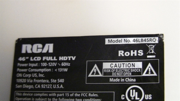 THIS PART WAS PULLED FROM RCA 46" LCD TV, MODEL # 46LB45RQ.