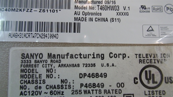 THIS PART WAS PULLED FROM SANYO 46" LCD TV MODEL # DP46849 & CHASSIS # P46849-00, UNIT WORKING COMPATIBLE ALL MODEL # BELOW.