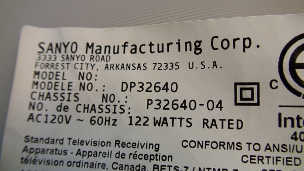 THIS PART PULLED FROM 32" SANYO LCD TV, MODEL # DP32640, CHASSIS: P32640-04, UNIT WORKING COMPATIBLE ALL MODEL # BELOW.