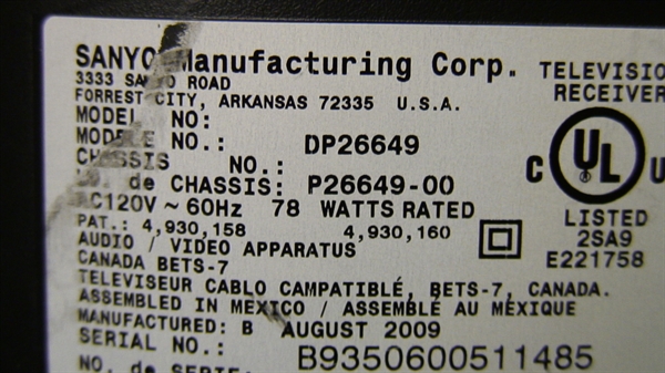 THIS PARTS WE PULLED FROM WORKING 26" LCD SANYO MODEL # DP26649, WE CHECKED AND TESTED ALL FUNCTION BEFORE PUT ON HDTVPARTS STORE.