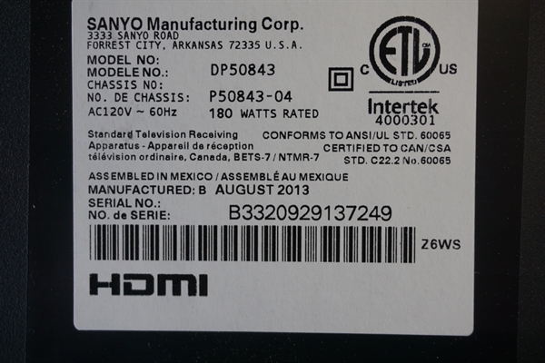 THIS PART WAS PULLED FROM SANYO 50" LCD TV, MODEL # DP50843.