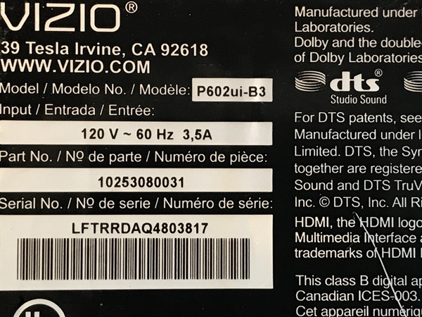 THIS PART WAS PULLED FROM VIZIO 60" LED TV, MODEL # P602UI-B3, UNIT WORKING COMPATIBLE ALL MODEL # BELOW.