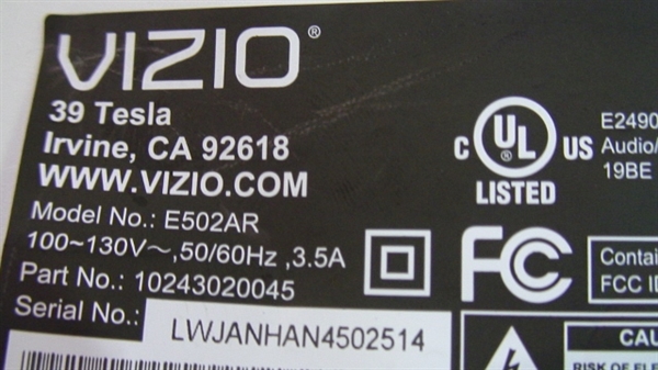 VIZIO 50" LCD TV AC POWER CORD (27.00818.161) UNIT FULL FUNCTION TESTED & CERTIFIED BY TECHNICIAN (100% WORKING CONDITION).