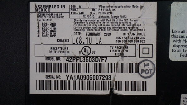 THIS PART WAS PULLED PHILIPS 42" LCD, MODEL # 42PFL 3603D/F7, CHASSIS # LC8.1ULA, UNIT WORKING COMPATIBLE ALL MODEL # BELOW.