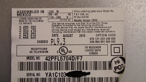 THIS PART WAS PULLED FROM WORKING 42" PHILIPS LCD, MODEL # 42PFL6704D/F7, CHASSIS # PL9.3, UNIT WORKING COMPATIBLE ALL MODEL # BELOW.