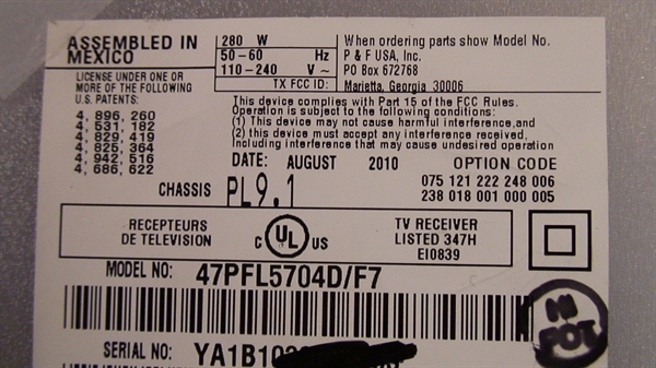 THIS PART PULLED FROM WORKING 47" PHILIPS LCD, MODEL # 47PFL5704D/F7, AND CHASSIS # PL9.1 , UNIT WORKING COMPATIBLE ALL MODEL # BELOW.