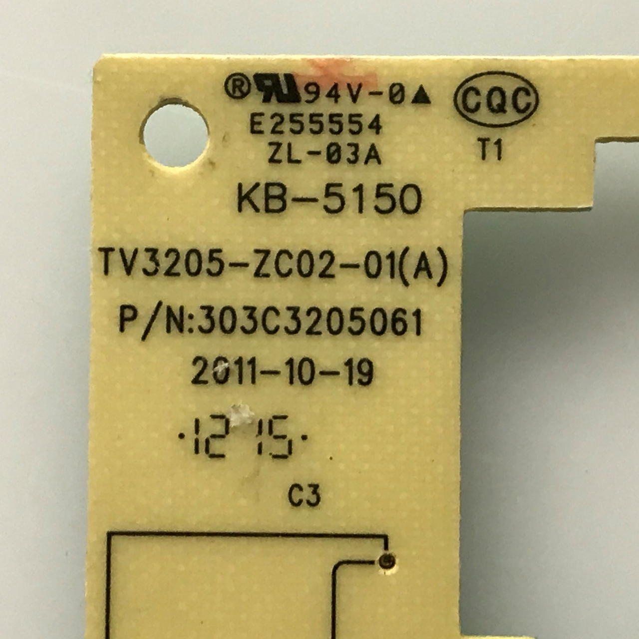 Manufacturer part number: 303C3205061, TV3205-ZC02-0 (A), KB-5150, ZL-03A, E255554, EW39T5KW TW-67801-A039A