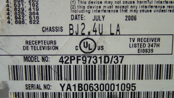 THIS PART PULLED FROM WORKING 42" PHILIPS LCD TV MODEL # 42PF9731D/37.