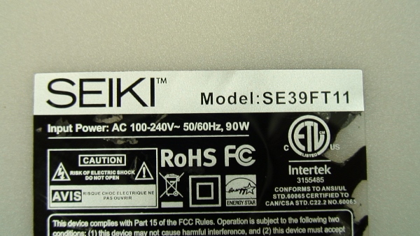 THIS PART WAS PULLED FROM SEIKI 39" LED TV, MODEL # SE39FT11.