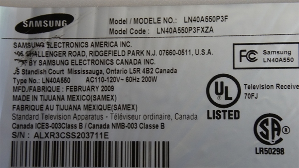 THIS PART WAS PULLED FROM SAMSUNG 40" LCD TV MODEL # LN40A550P3F, UNIT WORKING COMPATIBLE ALL MODEL # BELOW.