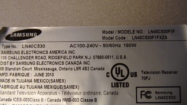 THIS PART PULLED FROM 40" SAMSUNG LCD TV, MODEL # LN40C550J1F , MODEL CODE: LN40C550J1FXZA, UNIT WORKING COMPATIBLE ALL MODEL # BELOW.