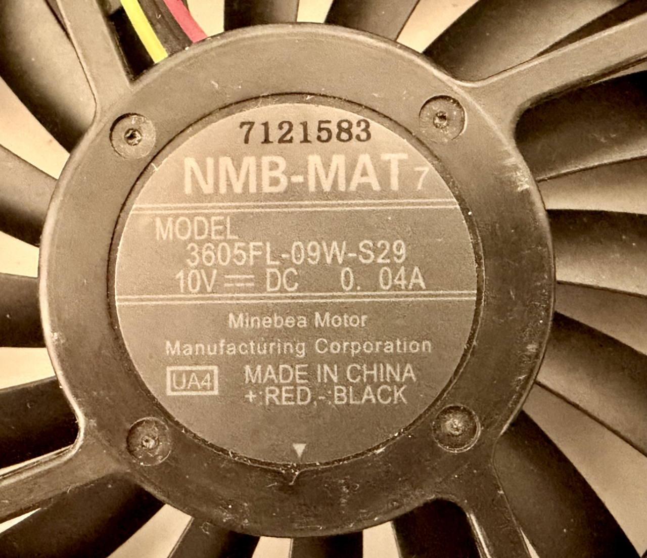 Manufacturer part number: 3605FL-09W-S29, NMB-MAT, 10VDC 0.04A Axial Cooling Fan, 90x90x10mm