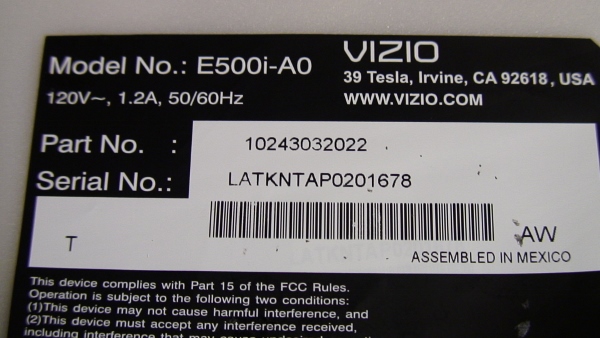 THIS PART WAS PULLED FROM VIZIO 50" LED TV, MODEL # E500I-A0, UNIT WORKING COMPATIBLE ALL MODEL # BELOW.