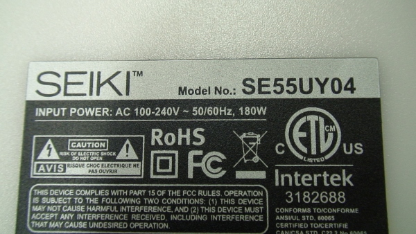THIS PART WAS PULLED FROM SEIKI 55" LED TV, MODEL # SE55UY04.