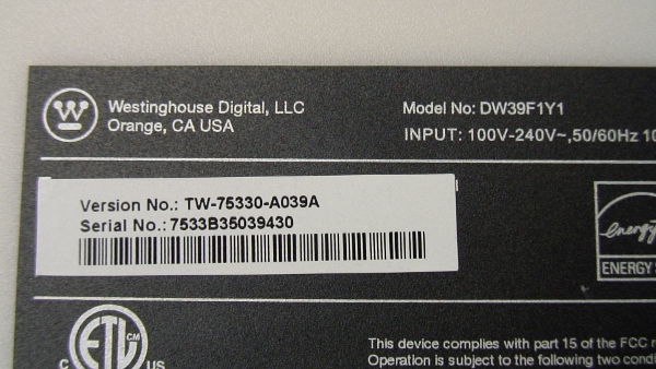 THIS PART WAS PULLED FROM WESTINGHOUSE 39" LED TV MODEL # DW39F1Y1, VERSION # TW-75330-A039A.