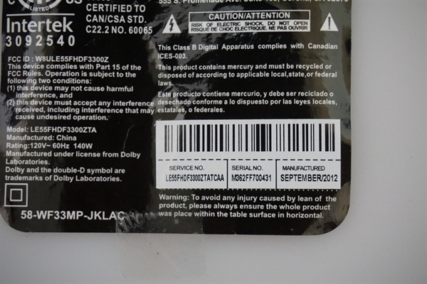 Manufacturer part number: 40-RL5510-DRE1XG, LE55FHDF3300ZTAAA, LE55FHDF300ZTAAA, LE48FHDF3300ZTATDAA