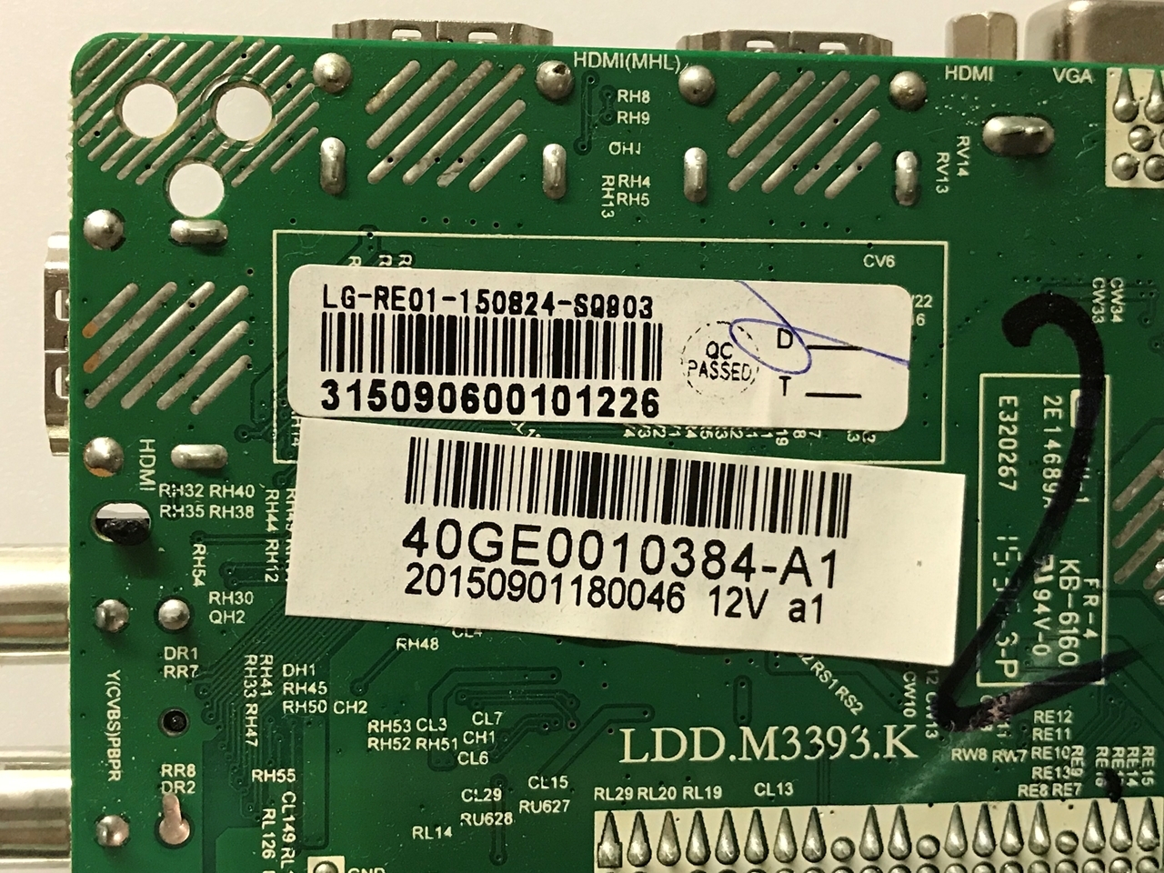 40GE0010384-A1, LDD.M3393.K, LG-RE01-150831-SQ101, LED40G45RQ, RCA 40 LED TV MAIN BOARD