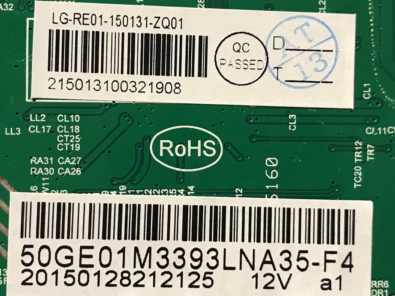 Manufacturer part number: 50GE01M3393LNA35-F4, LG-RE01-150205-ZQ01, 20150128212125, LD.M3393.B, 0205-ZQ01 17281