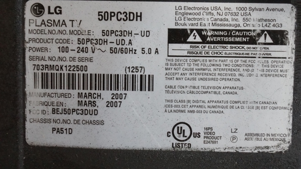 50PC3DH, 50PC3DH-UD, LG 50 PLASMA TV 768P, LG 50 PLASMA TV, 50PC3DH PLASMA TV 768P