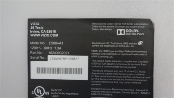 This part was obtained from a Vizio 50" LED TV Model # E500I-A1